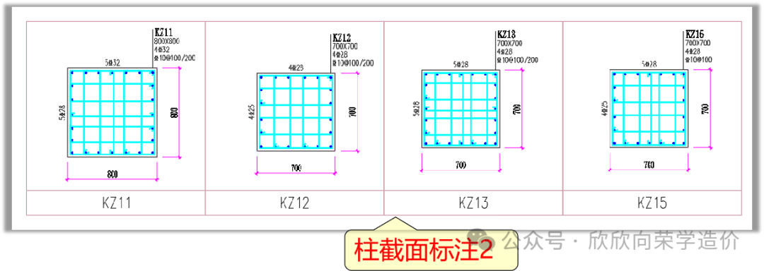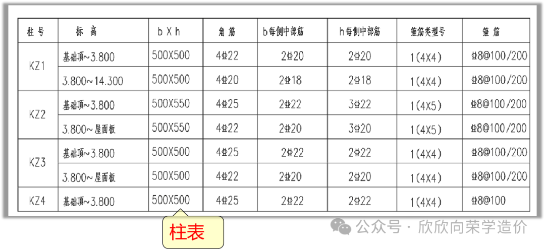 柱表里面都标注的很清楚,其实前面我们也都讲过,下面再给回顾一下,如图2所示。