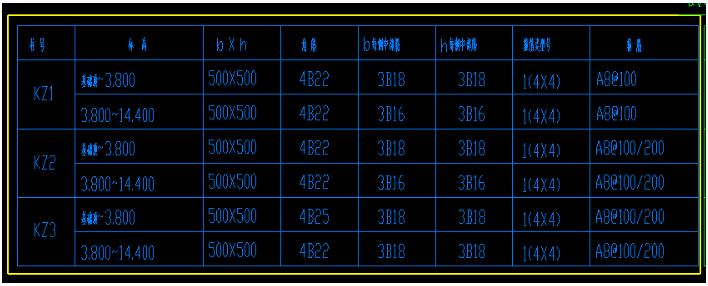 1. 单击选项卡“建模”➤“识别柱表”,拉框选择柱表中的数据,如下图所示黄色线框为框选的柱表范围,按右键确认选择;